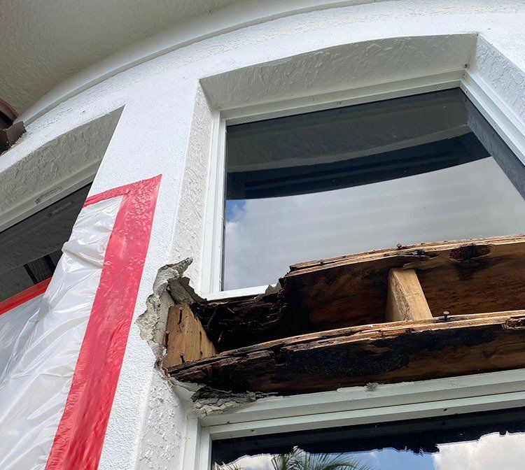 The images shown here are the result of damage we found recently while conducting a standard home watch inspection. This stain was the first sign that lead us to finding rotted wood on the exterior of the home.